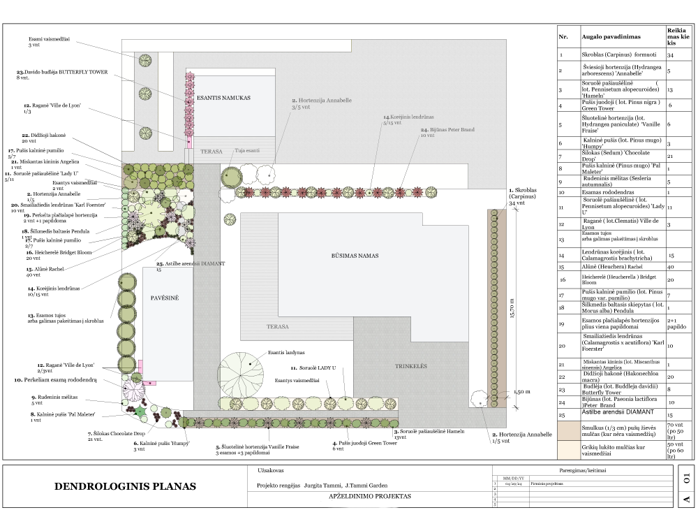 Sklypo dendrologinis planas, apželdinimas